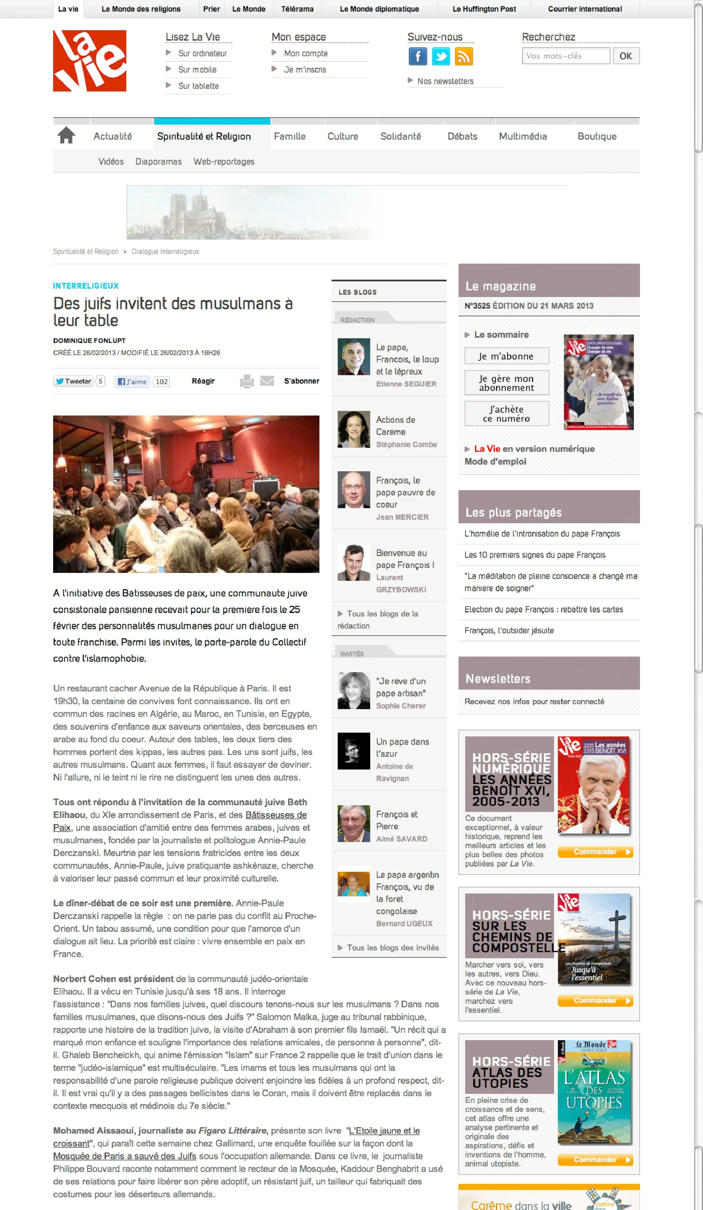 Des juifs invitent des musulmans à leur table 26 févr. Écrit par Annie-Paule Derczansky Annie-Paule Derczansky