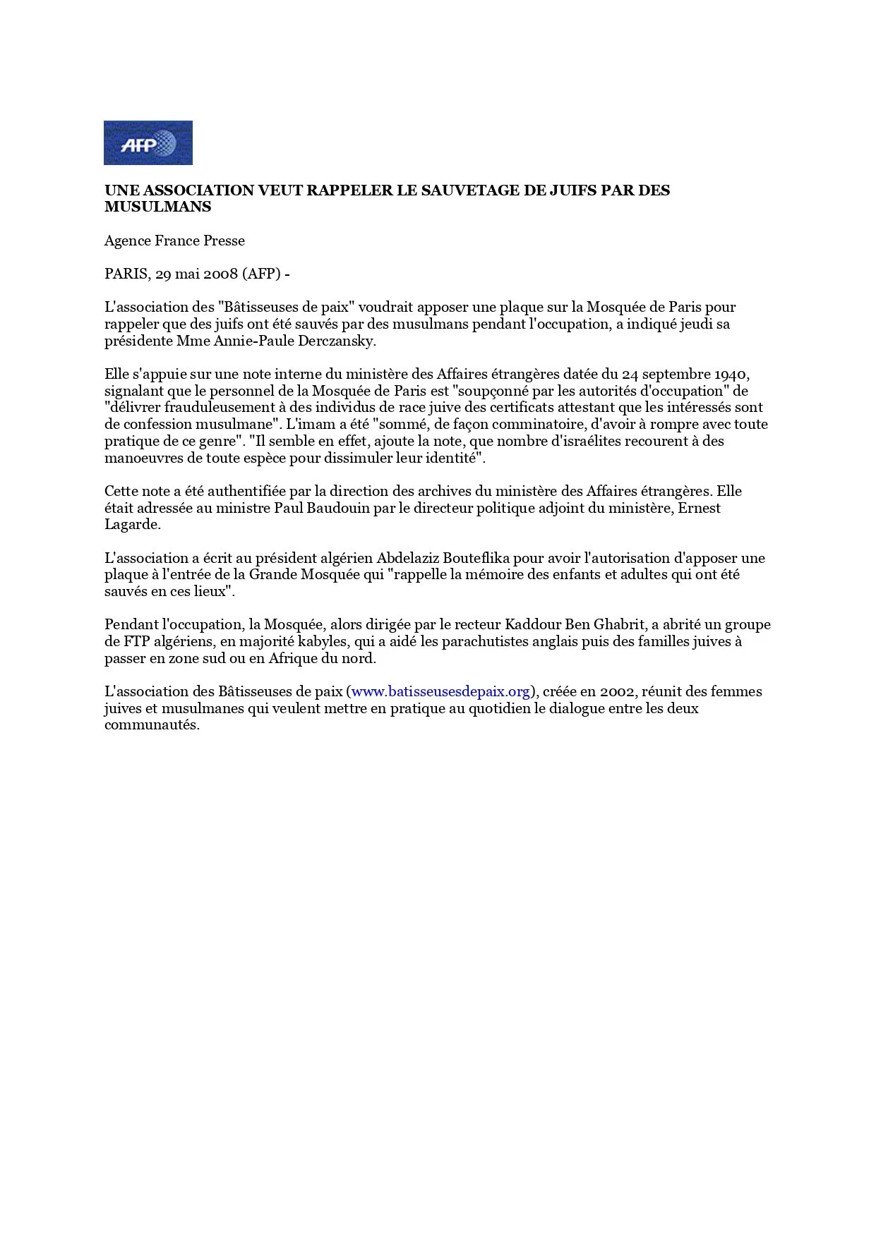 Rappel du sauvetage de juifs par des musulmans 29 mai Écrit par Annie-Paule Derczansky Annie-Paule Derczansky