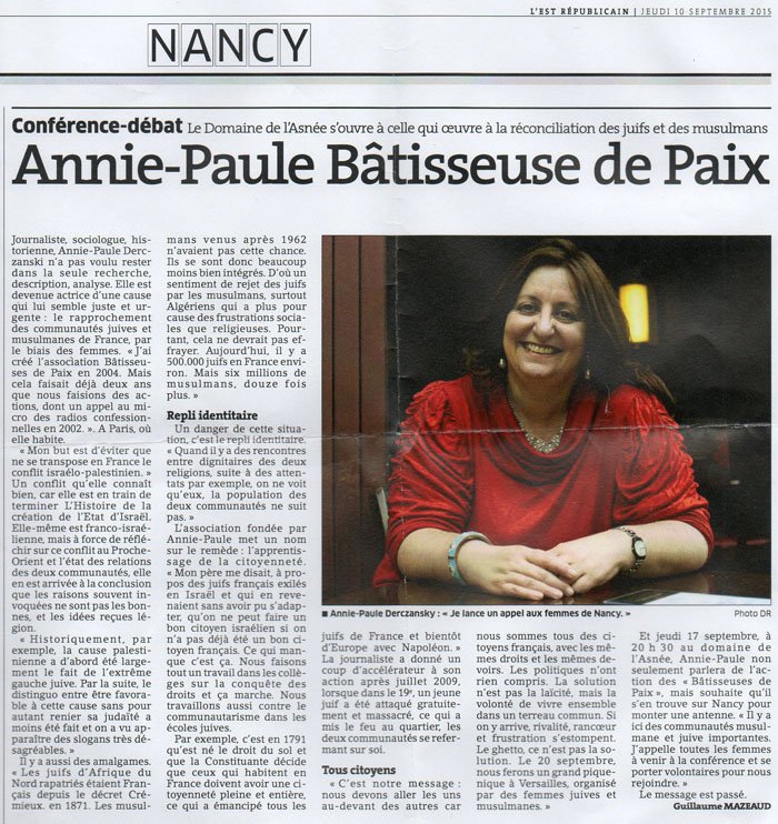 Annie-Paule Bâtisseuse de paix