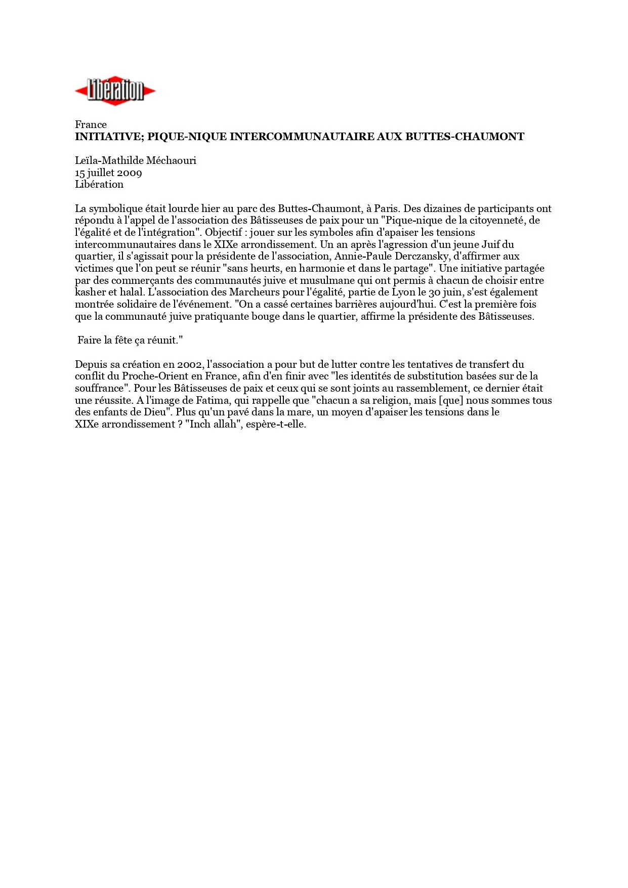 Pique-nique intercommunautaire Buttes-Chaumont 15 juil. Écrit par Annie-Paule Derczansky Annie-Paule Derczansky